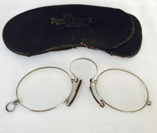 Title (ebay affiliate link): Antique SILVER Tone Civil War Look PINCE NEZ Spectacles w/ Slip Case