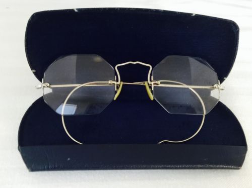 Title (ebay affiliate link): Antique WHITE METAL Silver Tone ART DECO Octagon Eyeglasses Spectacles with Case