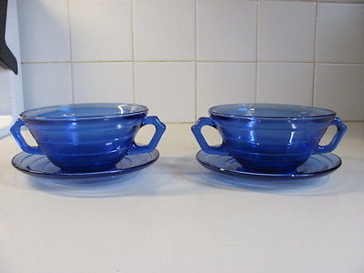 Title (ebay affiliate link): Set of Two Vintage Hazel Atlas Cobalt Blue Glass Soup Bowls with Underplates
