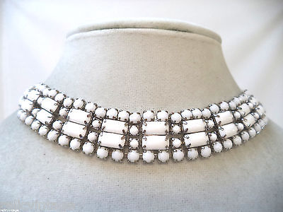 STUNNING VINTAGE ESTATE SIGNED WEISS MILK GLASS RHINESTONE NECKLACE MINTY! G6183