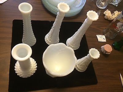 Lot of 6 ~ MILK GLASS BUD VASES ~ CANDY DISH