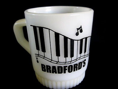 Vintage Fire King BRADFORDS PIANO Advertising Milk Glass Mug Anchor Hocking