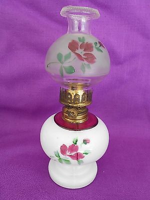 Antique Miniature Oil Lamp Victorian hand painted white Milk Glass vtg