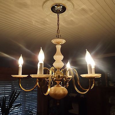 Title (ebay affiliate link): VINTAGE 60's 70's~HANGING CHANDELIER CEILING LIGHT PINK MILK GLASS 6 ARM REWIRED