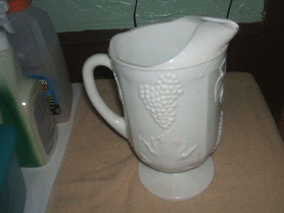 HARVEST WHITE MILK GLASS PITCHER - USED