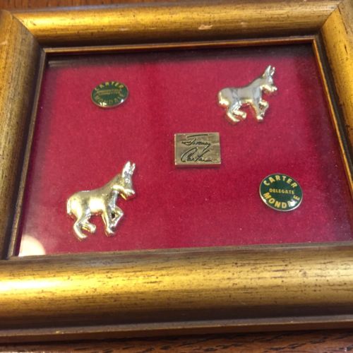 Title (ebay affiliate link): 3 pinback JImmy Carter Election pins 1980. Framed.
