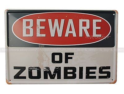 Title (ebay affiliate link): Warning Beware of Zombies Embossed Retro Metal Tin Sign Pub Bar Wall Decor 8x12"
