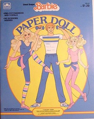 Title (ebay affiliate link): Great Shape Barbie paper dolls 1985 Mattel Inc. 2 dolls 4 pages clothes.