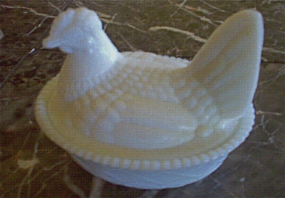 vintage milk glass chicken hen dish w/cover mint