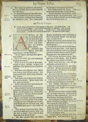 1568 1ST EDITION BISHOPS Bible Leaf/RARE/HAND COLORED JOHN/JESUS/THE SAMARITAN!
