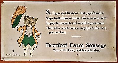 1920's TROLLEY STREET CAR SIGN SIR PIGGY DEERFOOT FARM SAUSAGE SOUTHBOROUGH MASS