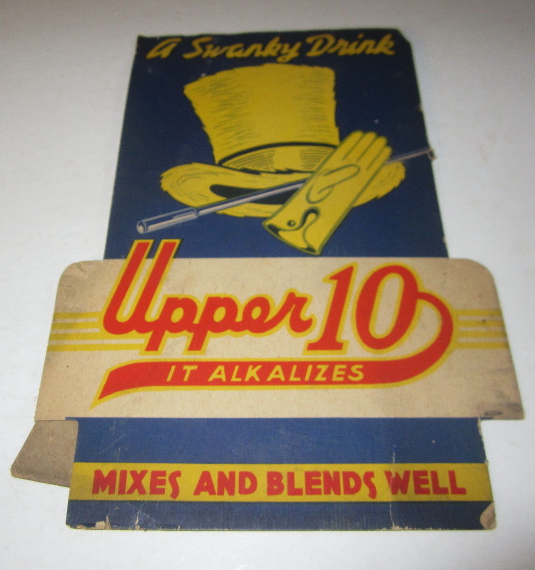 Old Vintage UPPER 10 Cardboard Advertising Stand-Up Display SIGN - Swanky Drink