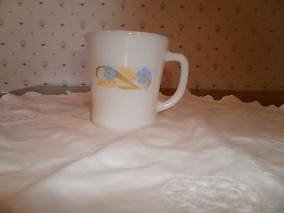 Vintage Anchor Hocking White Milk Glass Coffee Mug with Blue Flowers Yellow,