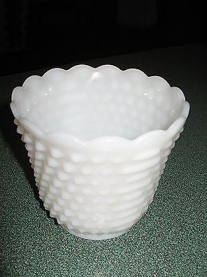 VINTAGE FIRE KING OVENWARE MILK GLASS WHITE HOBNAIL & BARS VASE MADE IN USA