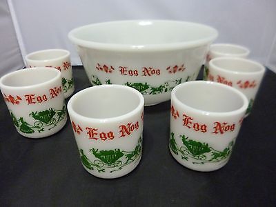 Vintage 1950's Hazel Atlas Milk Glass EGGNOG Punch Bowl Set w/6 Cups