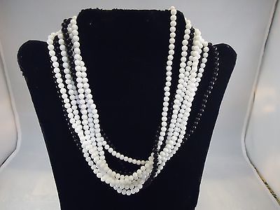 Vintage Les Bernard Milk Glass & Black Glass Bead 9-Strand Necklace Ornate Clasp