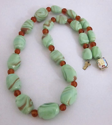 Vintage Swirled Mint-Green Milk Glass Bead Necklace