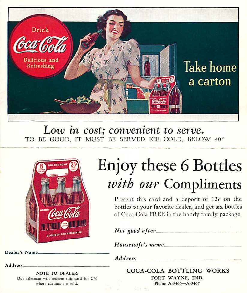 Title (ebay affiliate link): Folding Coca-Cola Advertising Postcard 6-Bottle Carton, Fort Wayne, Indiana
