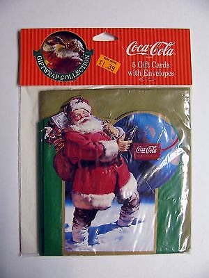 3 pkg-1993 Coca-Cola 5 Gift Cards w/envelopes Santa bag of Toys Bottle of Coke