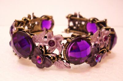 Title (ebay affiliate link): ANTIQUE STYLE PURPLE RHINESTONE CRYSTALS FLOWER BANGLE
