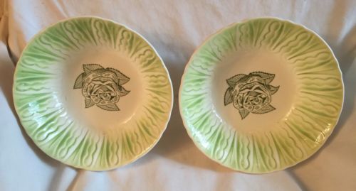 VINTAGE GREEN BOWLS - Centered Rose, Set Of 2