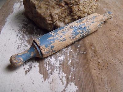 Sweet Small Old Primitive Vintage Child's Toy Wood Rolling Pin Shabby Blue Paint