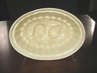 ANTIQUE YELLOW WARE PUDDING MOLD PEAR WITH LEAVES DESIGN EX.CONDITION