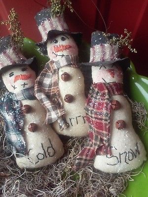 Title (ebay affiliate link): pRiMiTiVe ChRiStMaS wiNtEr SnOwMaN tRee OrNiE brrr.. FoLk Art *Set of 3* ~EHP~