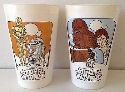 Vintage 1977 STAR WARS Coca-Cola 7-Eleven Stores Plastic Cups R2D2 C3P0 Han Solo