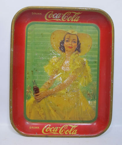 Title (ebay affiliate link): 1938 Antique Coca Cola Girl in Yellow Dress Advertisement Litho Tin Tray NR yqz