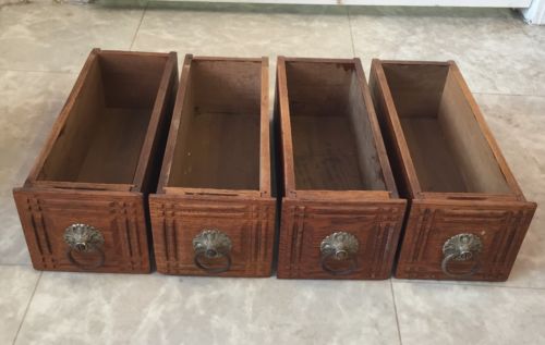 Title (ebay affiliate link): 4 Antique New Home Sewing Machine Co. Wooden Drawers Boxes W/Pulls