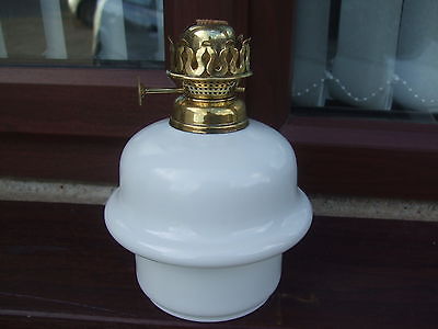 WIGHT & BUTLER MILK GLASS FREE STANDING OR DROP IN OIL LAMP FONT WITH BURNER