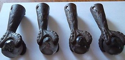 Title (ebay affiliate link): Set / 4 Antique Cast Iron Clawfoot Ornate Stool Claw Feet Glass Balls Brass Tone