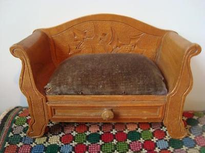 Antique Dollhouse Furniture Victorian Sofa Love Seat Carved Wood Velvet Cushion