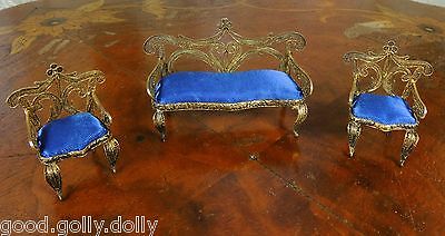 Wonderful Antique Gold Gilt Metal Filigree Miniature Doll House Parlor Furniture