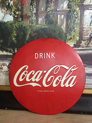 DRINK COCA COLA BUTTON TRADE MARK REG ROUND EMBOSSED METAL SIGN