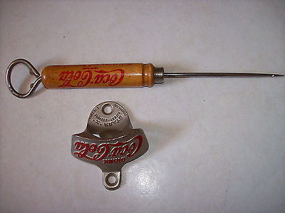 Vintage Drink Coca-cola Ice Pick & Bottle Opener Wood Handle & Coca Cola Opener
