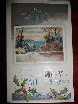 Vintage 1913 Happy New year antique postcard 1 cent stamp Clinton / Wooster Ohio