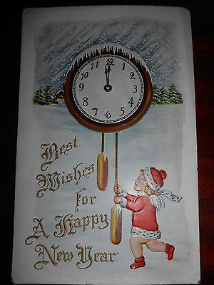 1912 vintage Happy New year clock santa antique postcard Wooster Creston OH snow