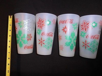Coca Cola hard plastic glasses holiday set (4) cups vintage NOS snowflakes