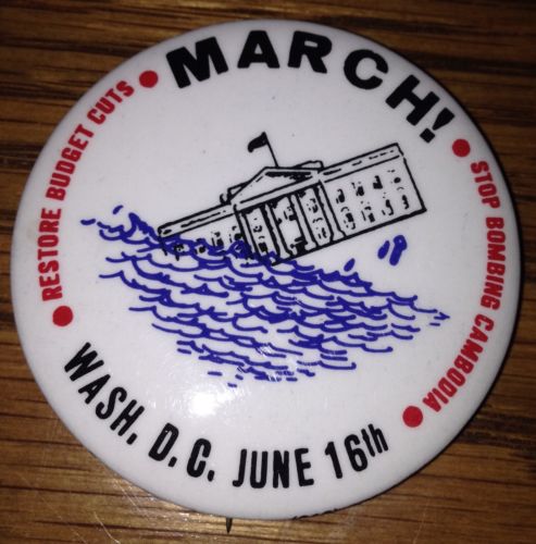 Title (ebay affiliate link): Stop The Bombing In Cambodia March DC Cause Pinback Button