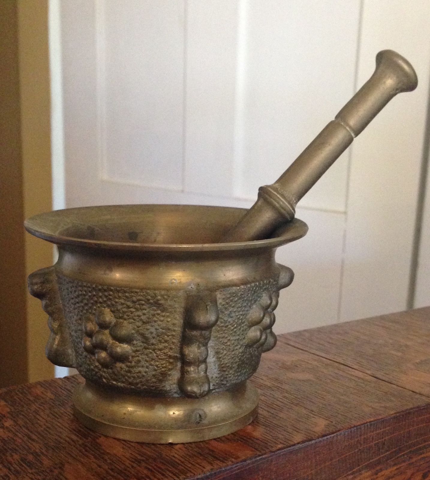 Title (ebay affiliate link): Antique Brass / Bronze Heavy Ornate Mortar And Pestle