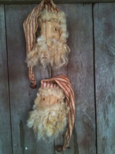 Primitive pair of Santa christmas Tree ornies ornaments wired FARMHOUSE