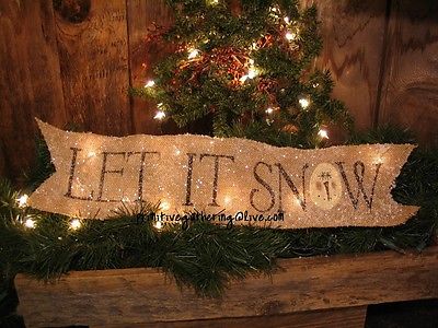 Title (ebay affiliate link): ~ 23" LET IT SNOW Snowman Glittered Farmhouse BURLAP Primitive SIGN Banner TUCK