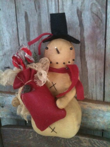 Title (ebay affiliate link): Primitive Christmas snowman doll sitter with his sack of Candy canes handmade