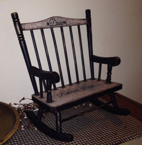 Title (ebay affiliate link): Primitive Wood Bench Rocking Crackle Country Farmhouse Decor
