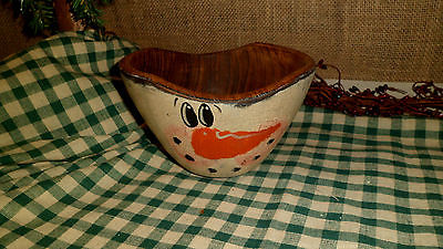 PRIMITIVE WOOD PANTRY DOUGH CANDY BOWL CRACKLE SNOWMAN COUNTRY CHRISTMAS DECOR