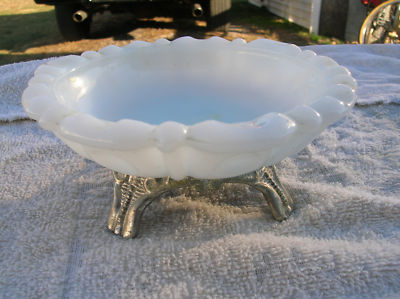 MILK GLASS ??? DISH WITH STAND,PRETTY UNIQUE,L@@K,FANCY