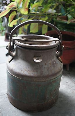 Primitive Antique Milk Can Old Paint Great Fitted Lid Medium Size Garden Piece