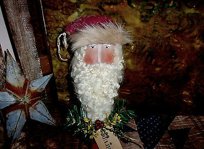 * Primitive 11x4 in. Christmas Santa Head BOBBIN - hand painted rusty doll